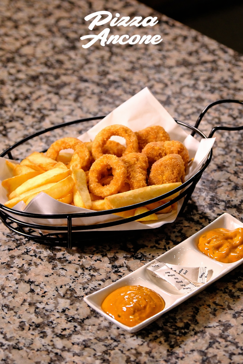 Kaşık patates, 5 adet soğan halkası, 5 adet nuggets