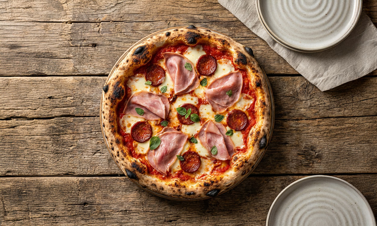 Domates sosu, Mozzarella, Dana jambon, Sucuk, Origan